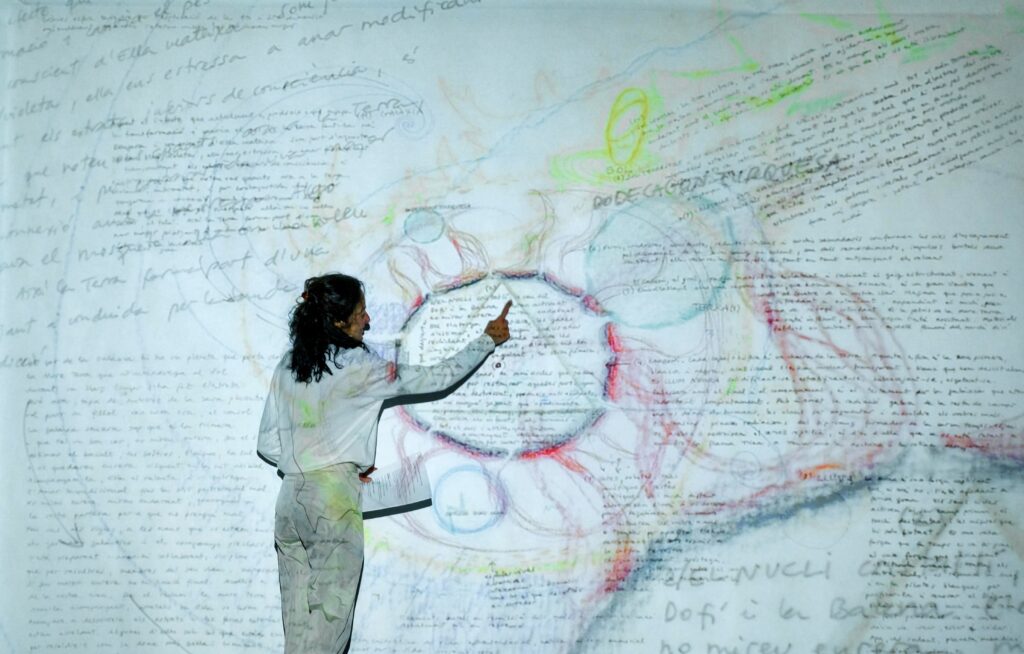 En la conferencia performativa (Teatre Romea, Barcelona, 2022) doy voz a la serie de dibujos y diagramas La Nueva Tierra⏎ (2018) que describen el presente salto evolutivo que experimentamos globalmente.